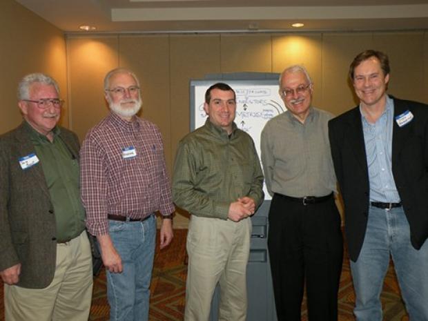 My colleague, Eileen V. Quigley, noted that Sam was one of the key players on the Thurston Climate Action Team (TCAT) that brought Climate Solutions’ New Energy Cities Workshop to Thurston County on January 27-29, 2010. Pictured here with his co-conspirators—Graeme Sackrison, Randy Zimmerman, Tom Crawford, and Stewart Henderson (Sam at far left) —she recalled Sam's impatience and passion about addressing climate change.