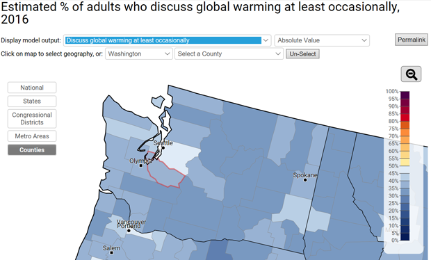 The Yale Center for Climate Communications has a wonderful set of maps on their website presenting crucial data and research in a visually compelling way. I was down a rabbit hole on their site one day, and a part of the story on climate action struck me. It's something that we’ve long known, but when you look at the maps, this fact is stark: most everyone agrees that we have a giant problem... but no one wants to talk about it.