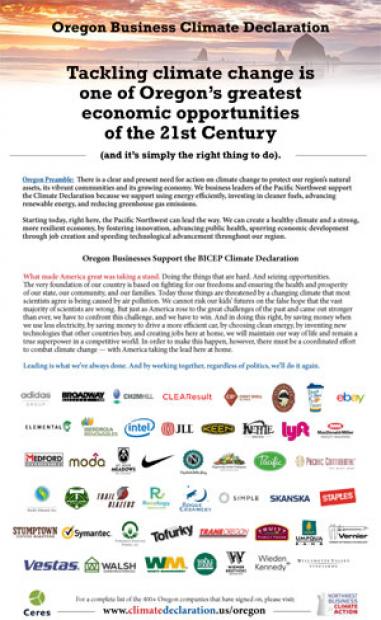Some of the new companies to sign the Oregon Business Climate Declaration include: