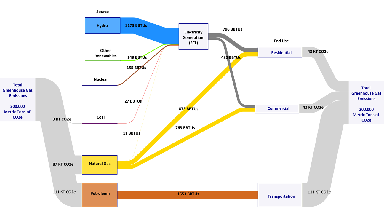 One immediate insight was that the community was farther along the path to being carbon-neutral than other suburban cities because Shoreline’s electricity comes from Seattle City Light’s ultra-low-carbon supply. Therefore, the community needed to focus on reducing petroleum use in cars and natural gas use in buildings in order to meet its carbon reduction goals.
