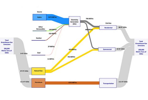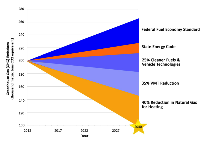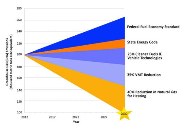 In early 2014, New Energy Cities created an energy map and a carbon wedge analysis to depict what it would take to meet the 2030 goal.