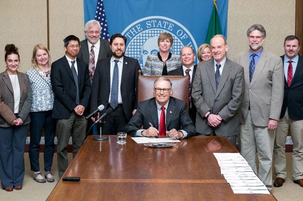 Governor Inslee signed the reform into law yesterday morning. HB1809 expands the types of vehicles that qualify for the incentive, now including not just freight trucks but also passenger shuttles and commercial service trucks. And critically, the incentive has been restructured to support all alternative fuels, allowing electric trucks to compete on an even playing field with fossil fuel options. Because the cost savings for going electric are so much deeper than fossil gas, an even playing field means that more businesses can choose 100% clean options—improving air quality, saving money, and protecting the planet.