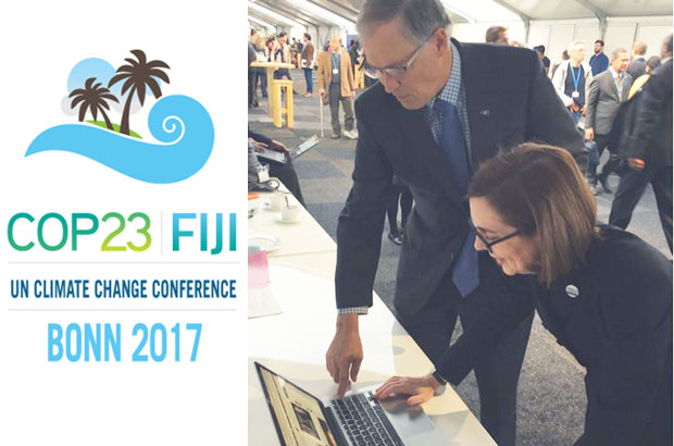 On November 14, Climate Solutions hosted a live Twitter Q&A on climate and clean energy issues with Oregon Governor Kate Brown and Washington Governor Jay Inslee. Both governors were attending the COP23 United Nations Climate Conference, presided over by Fiji and held in Bonn, Germany. All of our questions and answers are below. Twitter users: follow Climate Solutions for more news and commentary on climate and clear energy every day!