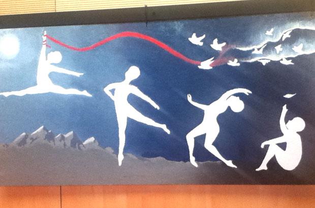 The mural has four distinct sections. The first section shows a person in a dormant state, desperately wanting to make change within themselves. The birds above spread education, and the feather symbolizes the education they are spreading. The person reaches out his/her hand to gain the proper education to make changes within themselves. The Aurora Borealis above symbolizes how the success of the person in the fourth section shines through the darkness, and inspires the first person to change themselves.