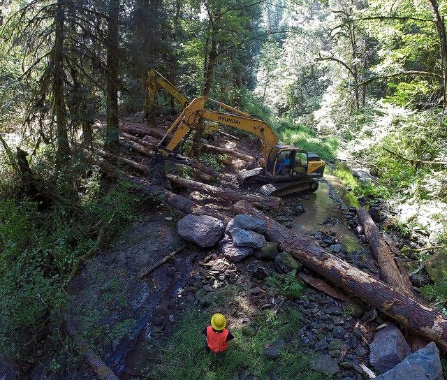 The work centers on stream and watershed enhancements that make life easier for salmon and other fish. The jobs cover a range, from landscapers, construction workers and heavy equipment drivers, to biologists and engineers. Projects buy materials from local venders such as quarries and nurseries.