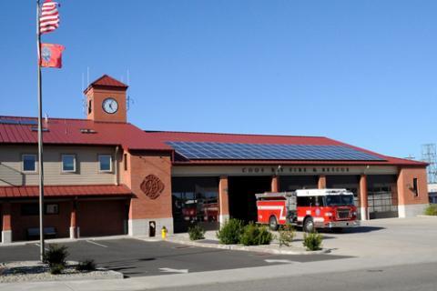 Shannon Souza of Sol Coast explains the solar and energy efficiency improvements at the Coos Bay Fire Station.