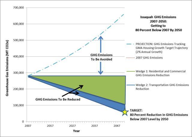 Having your community aim at a clear and measurable emission reduction target—such as the City of Issaquah’s goal to reduce community-wide carbon emissions to 80 percent of 2007 levels by 2050—will drive decisions about climate action strategies in a coherent fashion, provide the basis for tracking and measuring progress, and encourage critical community buy-in around a defined outcome.
