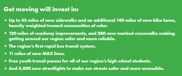 While this isn’t the last and only measure and set of investments we need to tackle the climate crisis, we are glad it includes critical investments that move the needle toward an equitable regional transportation system that aligns with our climate and clean economy goals. We need a regional approach and regional solutions to keep up with our growing region’s transportation needs in the face of the climate crisis, while addressing systemic racism and other historical injustices that continue to affect our communities. And that’s what Metro’s Get Moving 2020 (Yes on Measure 26-218) represents.