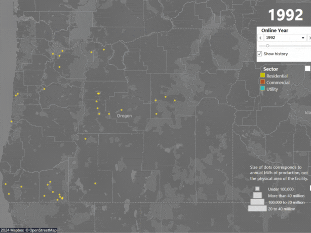 Renewable, pollution-free energy harnessed from the sun has experienced massive growth in Oregon. As of 2021, 0.98 million megawatt/hours of Oregon’s electricity was generated from solar. A large share of this growth is from dozens of utility-scale solar arrays being built across the state. Check out the animated graphic below to see the growth of solar panel installations over the last three decades. The number of residential rooftop solar panels across the state has also been steadily growing, thanks to their considerable benefits to homeowners and communities. As solar adoption continues to expand, the additional grants and incentive programs now supercharged by federal funding will encourage more homeowners to adopt this clean energy technology.