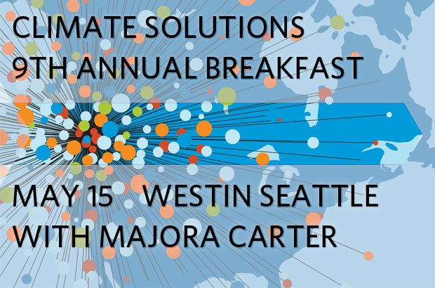 We often answer these questions best together. That's why we hope you’ll be able to join us for Climate Solutions' 9th Annual Breakfast: Monday, May 15 at 7:00am, at the Westin Seattle. Check-in and networking from 7:00am-7:30am, Program 7:30am-9:00am.