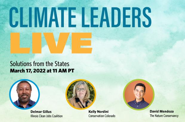 States have long been leading on climate action and it’s not just the West Coast. Lots of states are going big on climate and clean energy and they’re passing policies with the help of extraordinary coalitions. Our next Climate Leaders Live will focus on this new era of deep and diverse coalitions and implementing significant climate policy and take a look at how this real progress compares and complements across the country. Join Gregg Small for a moderated conversation with Kelly Nordini (Conservation Colorado), Delmar Gillus (Illinois Clean Jobs Coalition), and David Mendoza (The Nature Conservancy WA) as we discuss cutting carbon, creating jobs, and addressing equity.