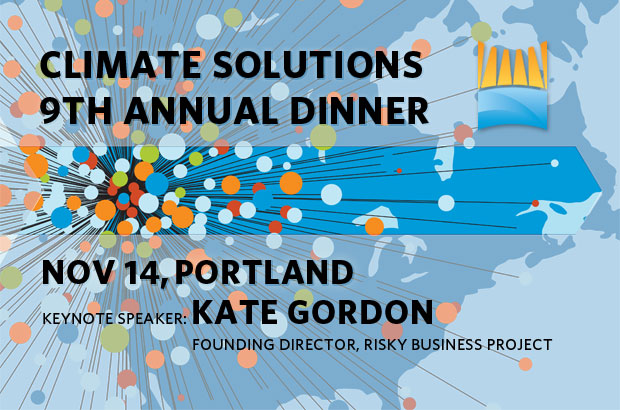 We hope you can join us for our Climate Solutions 9th Annual Dinner, Convergence: Accelerating clean energy solutions to the climate crisis on Tuesday, November 14, 5:00pm-8:00pm (5pm - 6pm check-in and networking hour, program starts at 6:10pm) at the Hilton Portland with keynote speaker Kate Gordon, Founding Director, Risky Business Project. We are thrilled to have Kate join us.