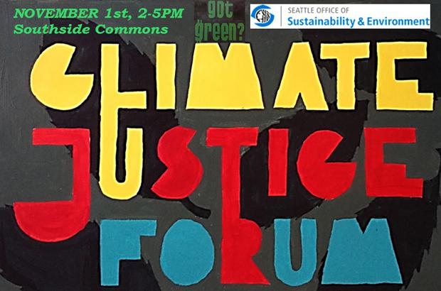 Come to our CLIMATE JUSTICE FORUM on Saturday, November 1st at Southside Commons (3518 S Edmunds Street Seattle), 2-5PM.